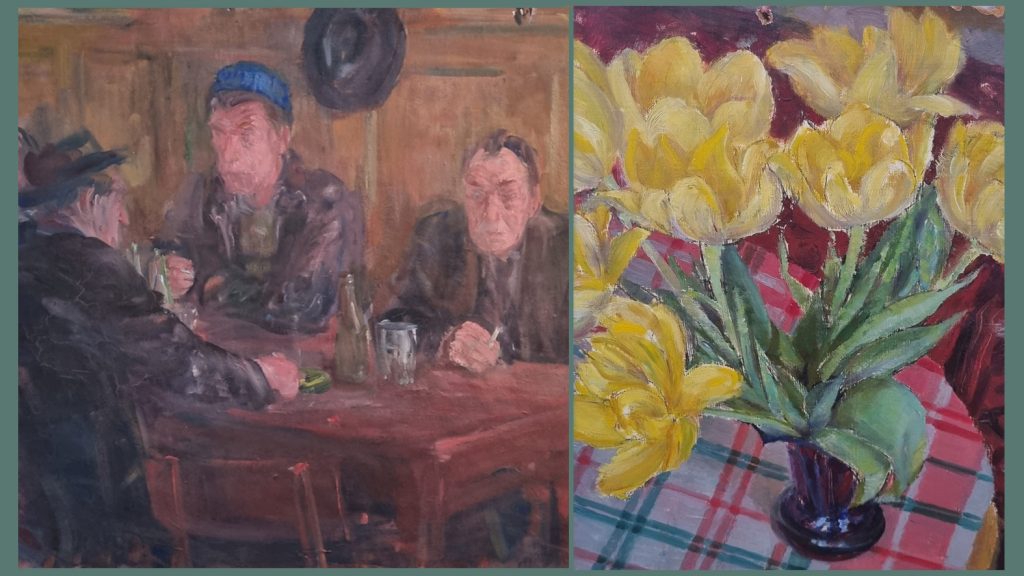 Kalliopes systerdotter Eva Jonsson har fört samman konstnärernas verk till en gemensam utställning. Kalliopes tavlor är från 1942-1967 och Alvars målningar är från sent 60-tal fram till 1982.